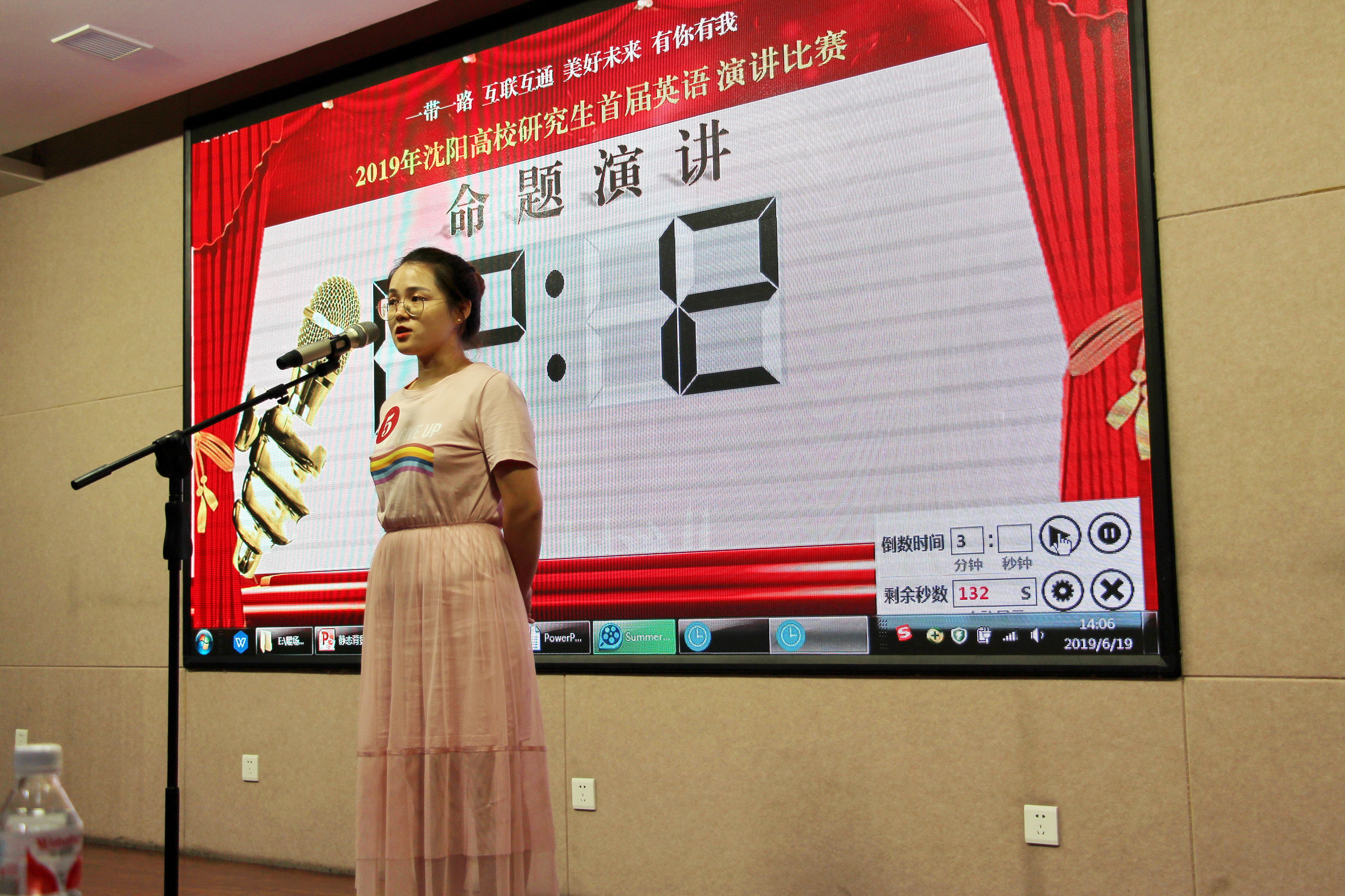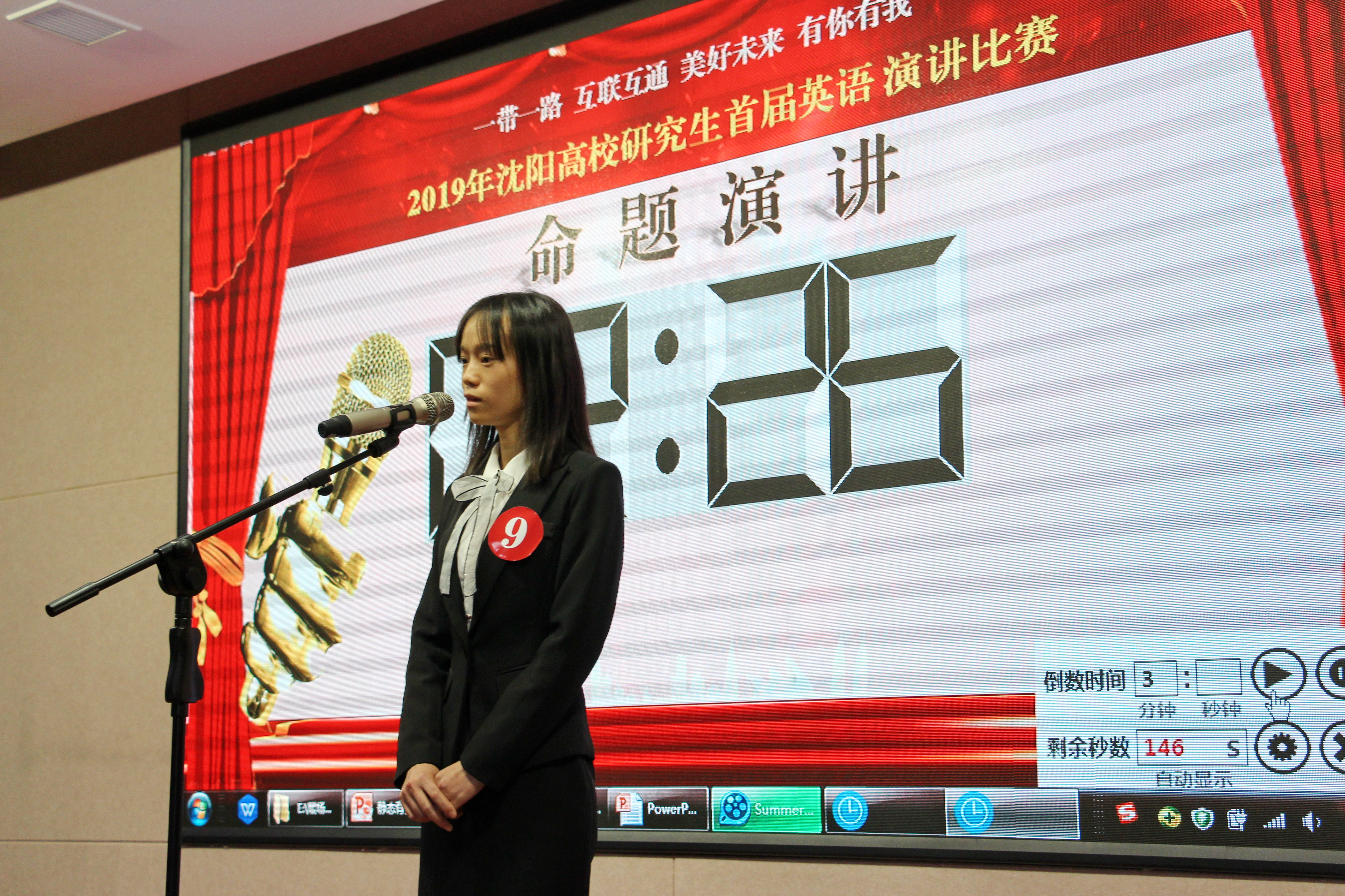 6月19日下午,由沈阳市教科工委主办、沈阳师范大学承办的沈阳高校研究生首届英语演讲大赛在沈阳师范大学图书馆报告厅举行。本次大赛的主题为“一带一路互联互通美好未来有你有我”,来自沈阳各研究生培养单位的共24名选手以“An Opening China and The Belt and Road Initiative”为题进行了命题演讲。